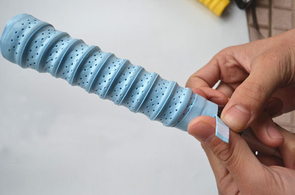 一只新的球拍,在拍柄上會有一柔軟的皮包裹著,它是為防止運動員在使用時因手部用力過大或時間太久而被拍柄磨出血泡或磨破皮。 所以建議大家在球拍纏上吸汗帶。